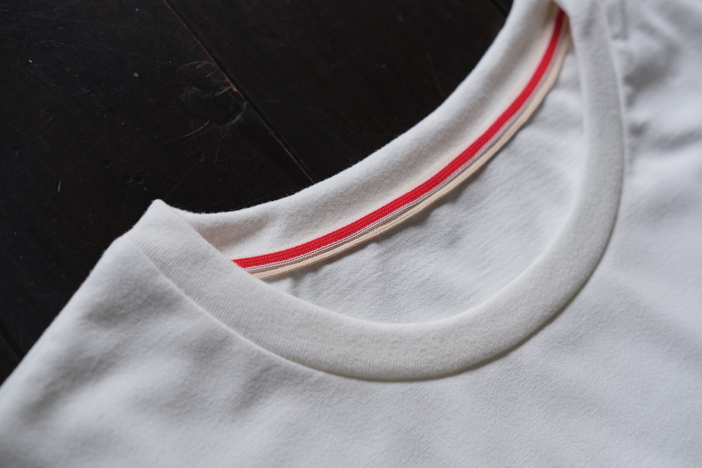 ・首元にはタグはなく、「火の国・熊本」と「阿蘇」をイメージした赤と金のラインはまさにレペゼン熊本なデザイン